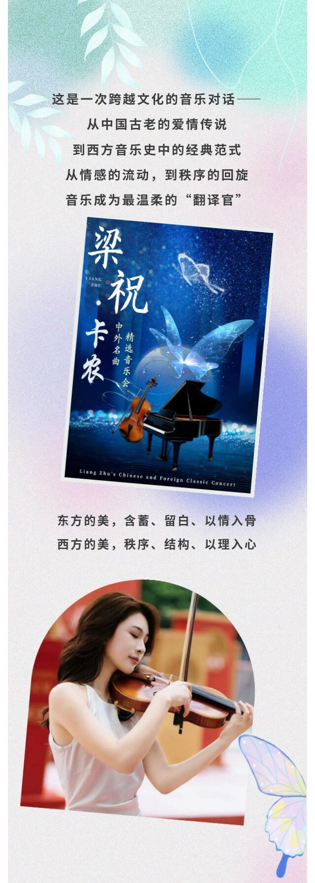 演出名称:【深圳】「弦遇中西,乐动心弦」《梁祝·卡农》中西浪漫名曲精选音乐会【网上订票】演出时间:2026.04.25 周六 19:30