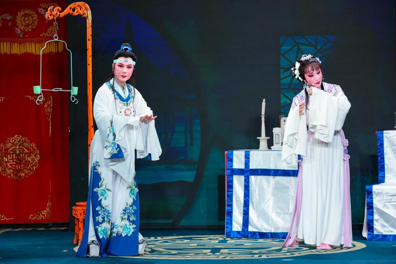 越剧《红楼梦》改编自古典名著《红楼梦》,描写了林黛玉幼失双亲寄居外祖母家,心情忧郁,体弱多病;表兄贾宝玉与她两小无猜,情投意合,心心相印。但宝玉祖母不许他俩联姻,而要宝玉与薛宝钗成亲。于是王熙凤用调包计撮合宝、钗。黛玉得知,含恨而死。宝玉在洞房之夜明白骗婚真相,惊愤交加,急奔潇湘馆内哭悼后愤然出走。