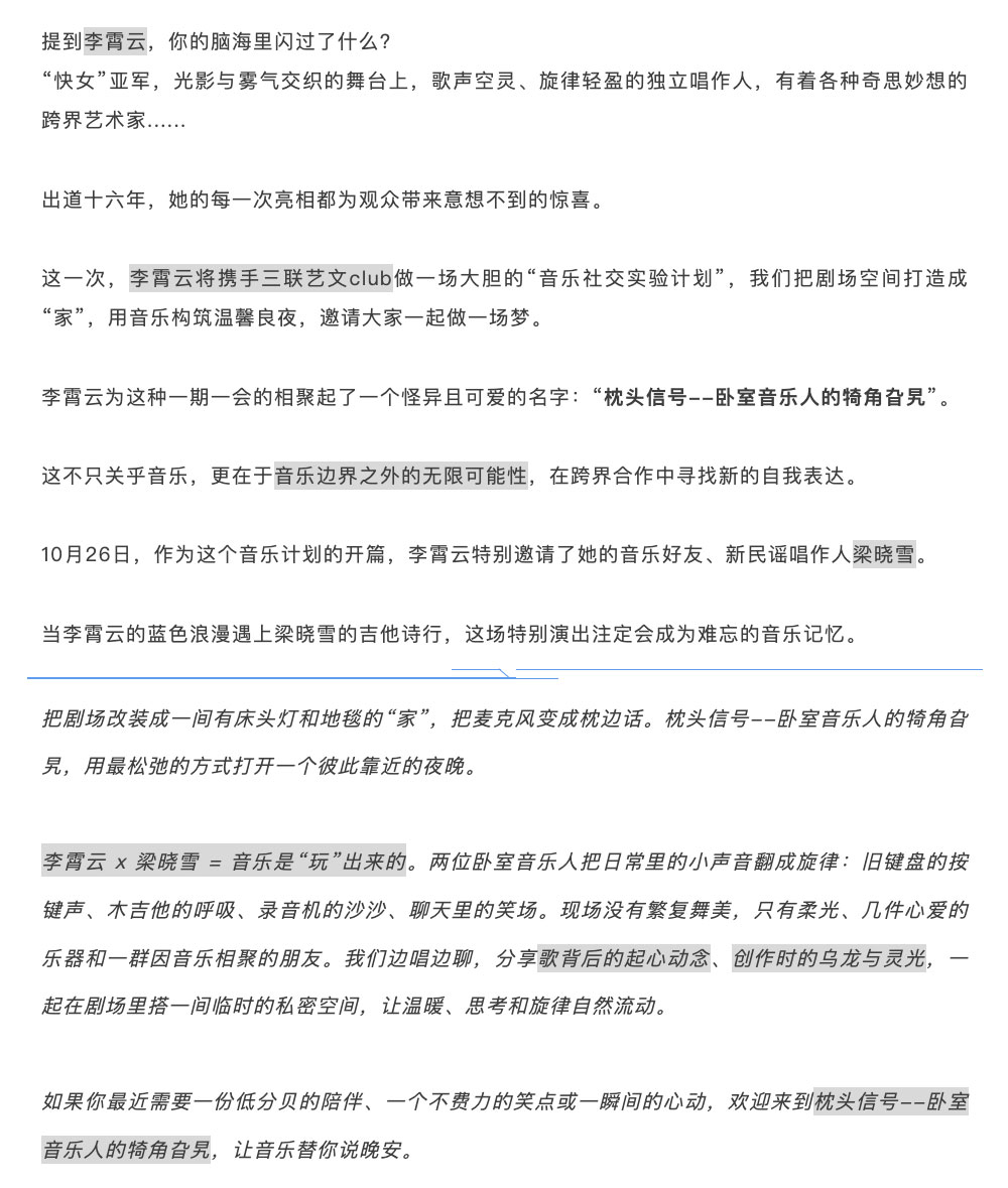 【北京】李霄云 x 梁晓雪【枕头信号】— 卧室音乐人的犄角旮旯—生活实验剧场